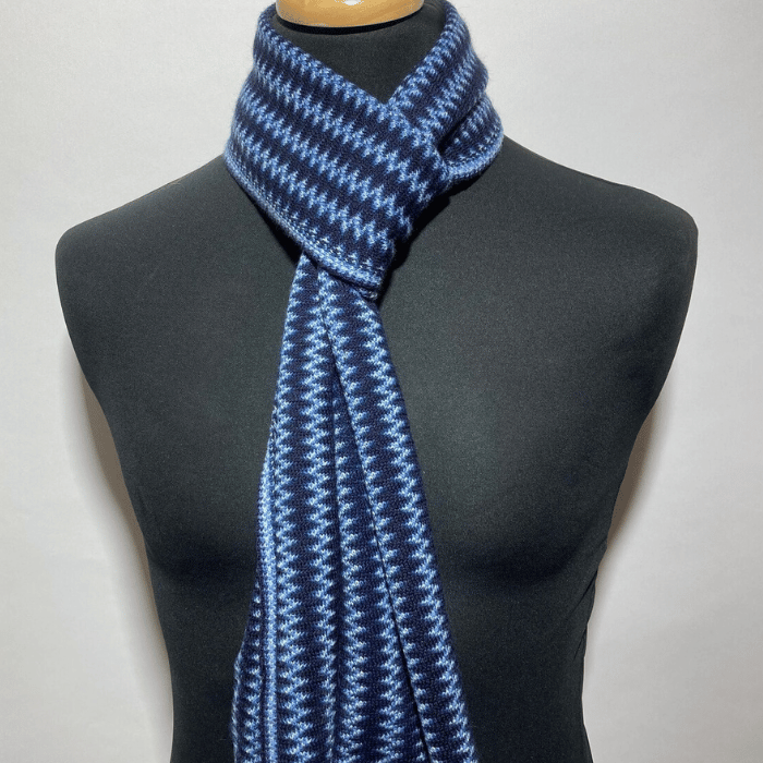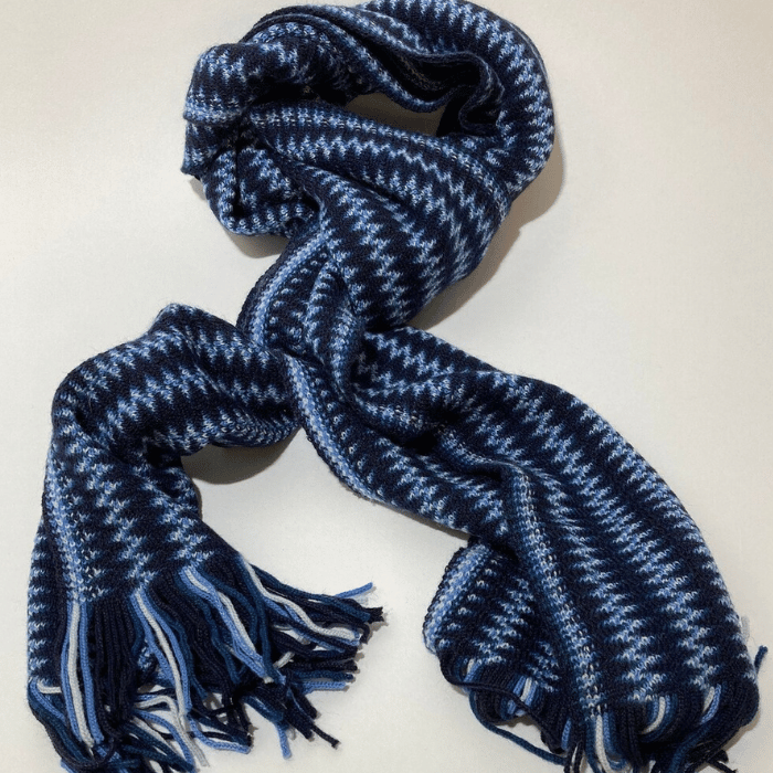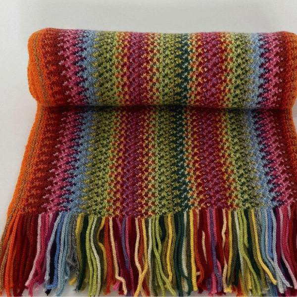 100% Merino Fine Gauge Warp Knitted Multi-Colour Zigzag Scarf