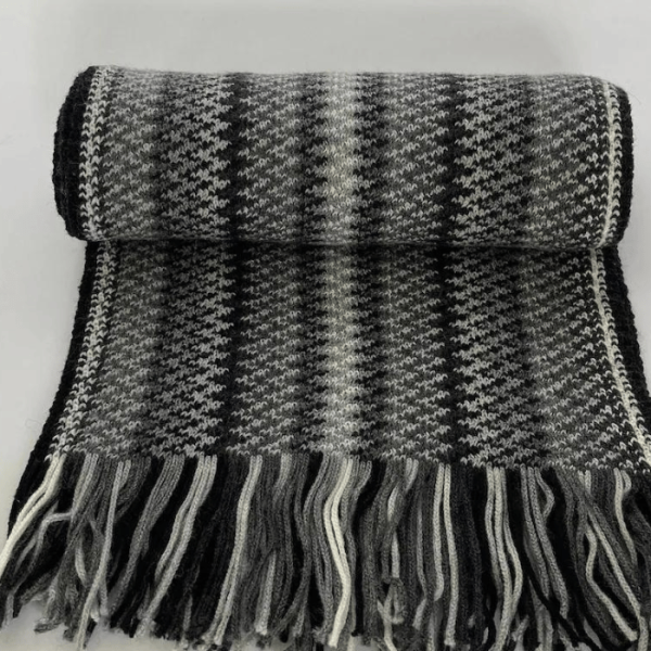 Crafted from luxurious extra fine Merino wool, this scarf features a striking multi-colour zigzag design that adds a bold, contemporary flair to your wardrobe. The merino yarn is known for its exceptional softness and durability, making this scarf both stylish and practical for everyday wear.